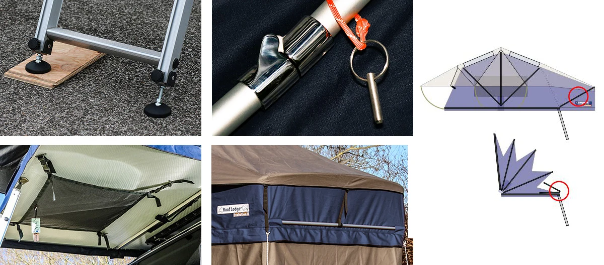 In diesem Abschnitt haben wir Elemente und Zubehörteile zusammengefasst, die nicht nur das Reisen mit dem Dachzelt einfacher und komfortabler machen, sondern auch gleich im Lieferumfang der Zelte enthalten sind.
